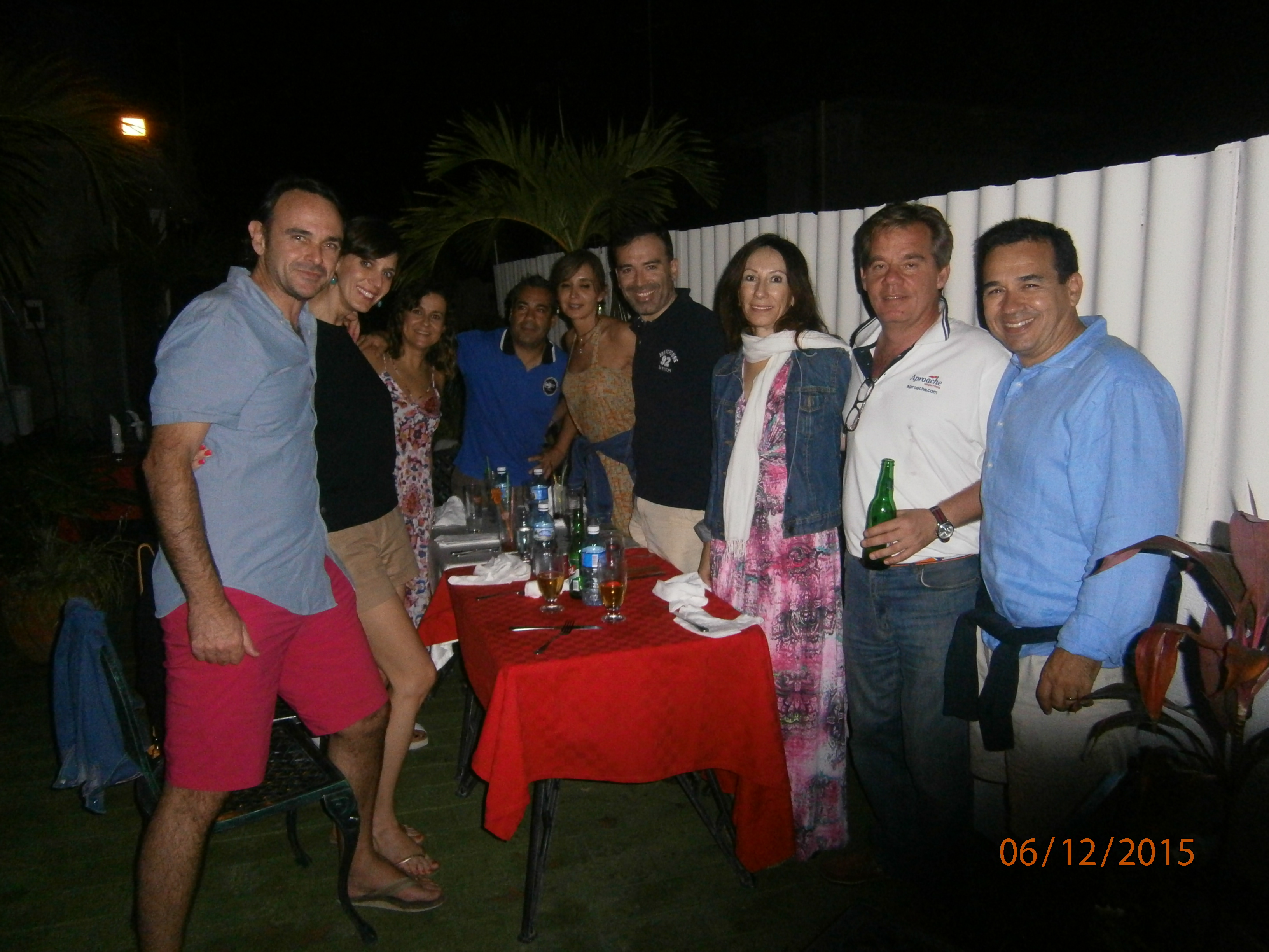 Aproache ha organizado una cena de bienvenida para toda la flotilla en la azotea de un restaurante muy coqueto, con vistas al mar y a Cienfuegos, con palmeras, con el famoso cantante Richy Pérez y su grupo y por supuesto, con el tradicional “Puelco” asado que no podía faltar en ninguna celebración cubana.