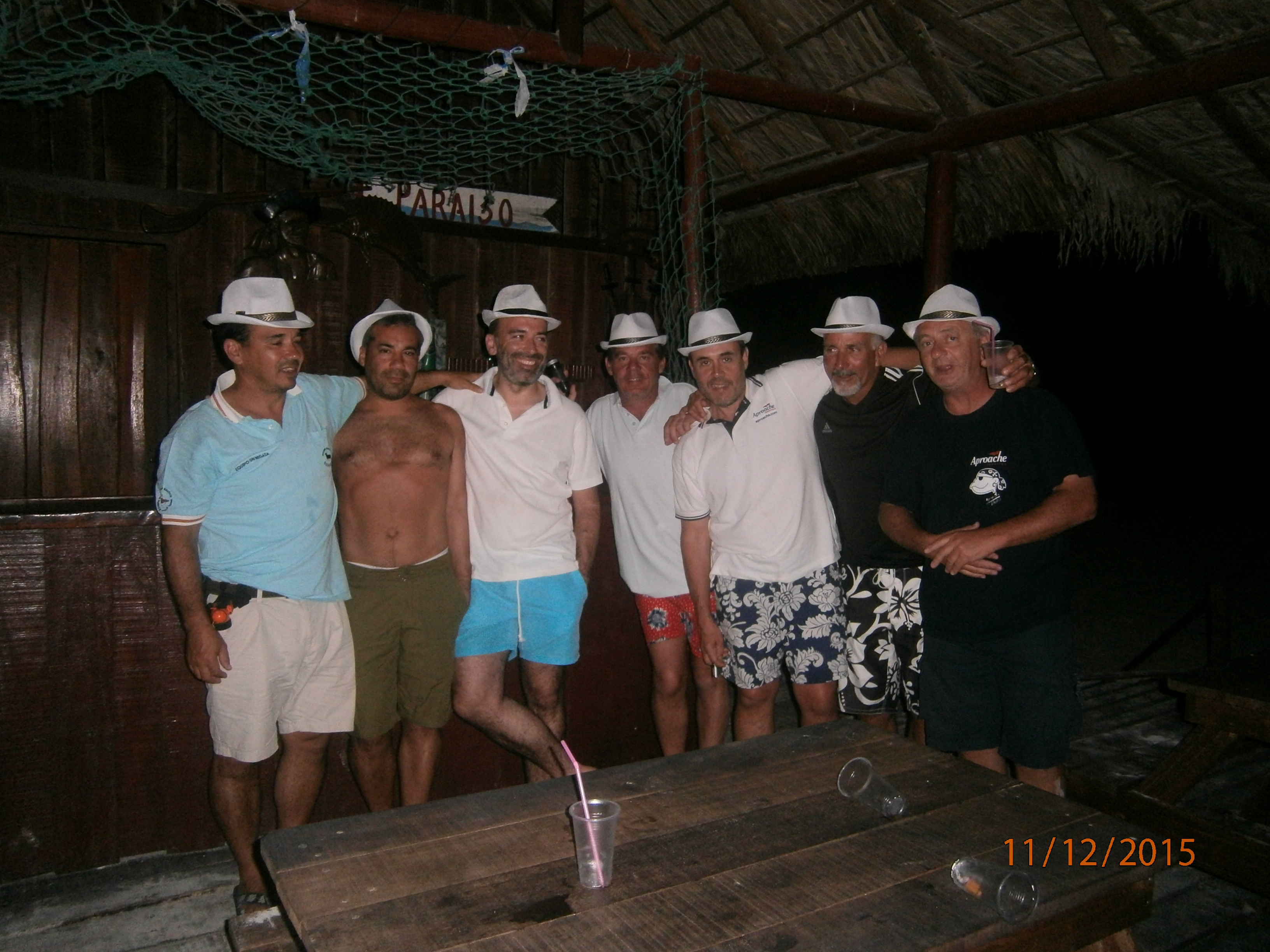 Buceamos un rato en la barrera y esta tarde a las 18.00 h hemos organizado una fiesta en el chiringuito Paraíso de Playa Paraíso , no hay música, tampoco electricidad , así que bajamos un teléfono con un altavoz y linternas con las que iluminamos la playa y el garito. Hemos bajado todos los catamaranes , somos 70 españoles solos en la playa Paraíso de Cayo Largo. Buen baile, buena música, inmejorable ambiente.