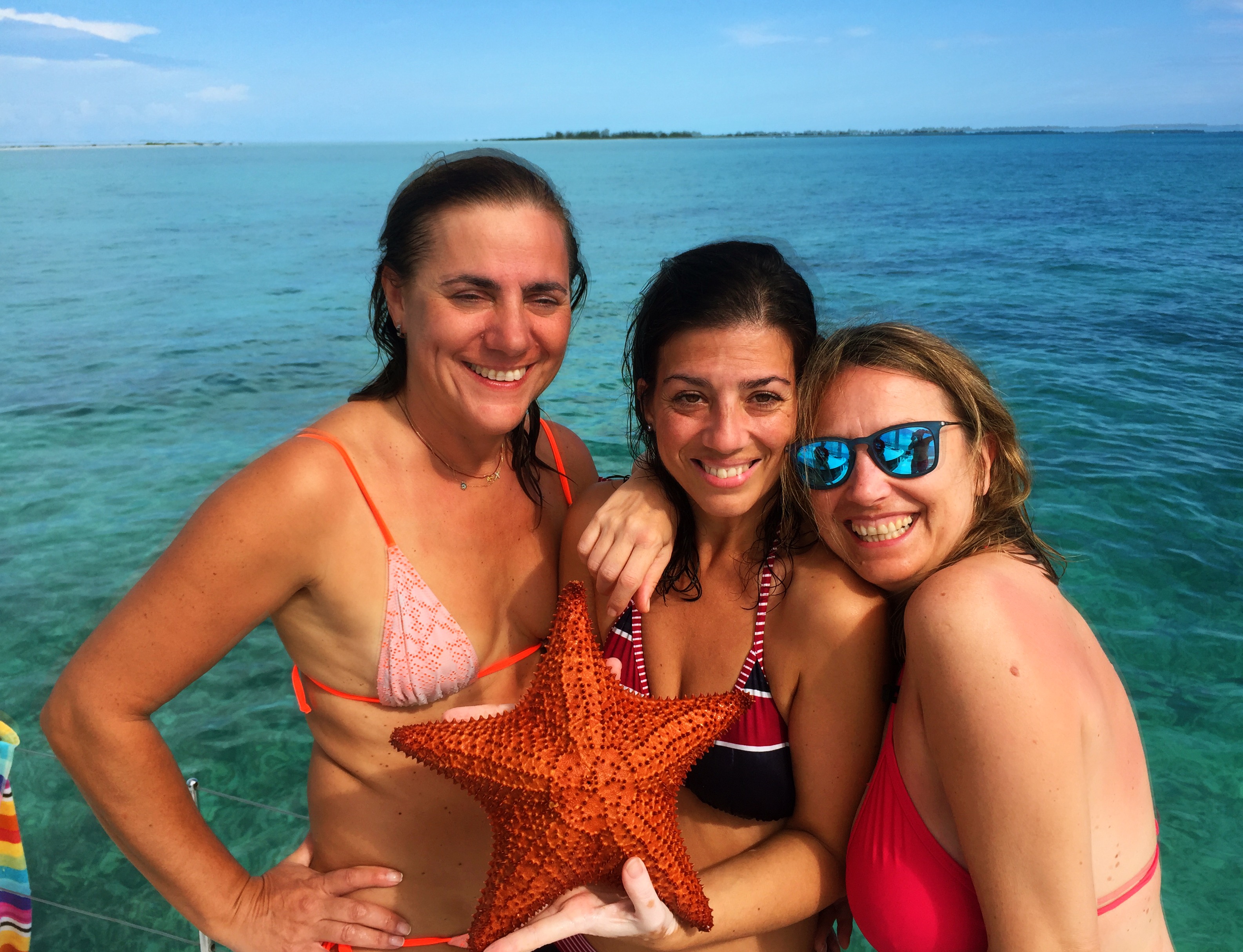 Navegamos pronto por la mañana hacia las piscinas naturales que están entre cayo Rico y Cayo largo , son bajos de arena blanca con medio metro de agua donde el color es increíble y las fotos chulísimas.